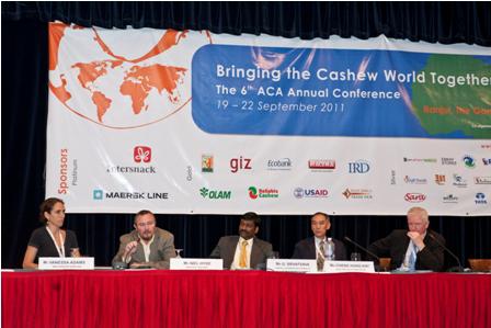 International experts discuss new market opportunities for African cashew (from left): Vanessa Adams, USAID West Africa Trade Hub; ChrisNubern, Kraft Foods; G. Srivatsava, Foretell Business Solutions; Cheng Hung Kay, CHK Trading Co.; and Niel Hyde, Iracema